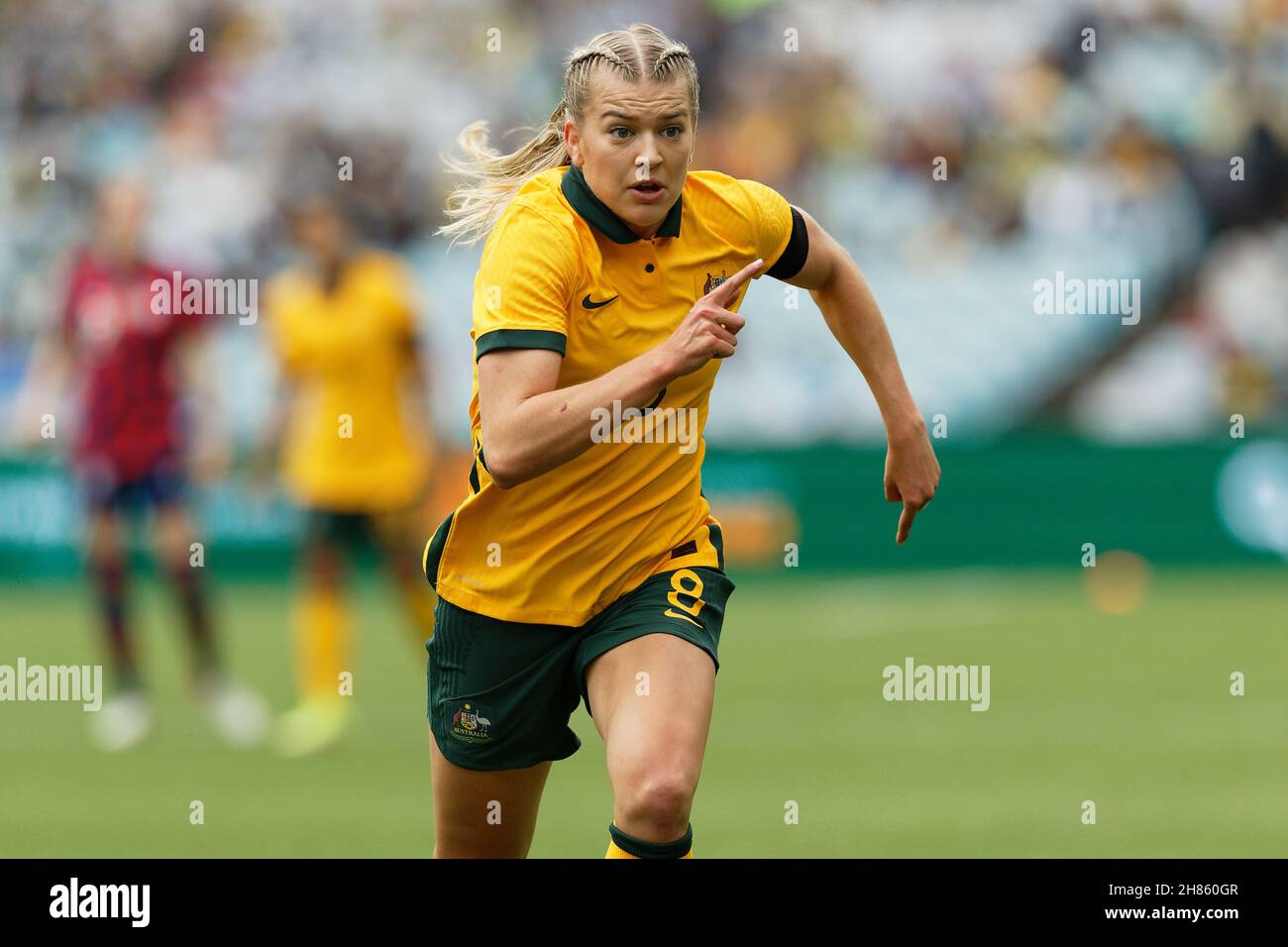 Charlotte Grant Von Den Matildas Jagt Den Ball Wahrend Des Spiels Eins Der Internationalen Freundschaftsserie Zwischen Den Australischen Matildas Und Der United States Of America Women S National Team Am 27 November 2021